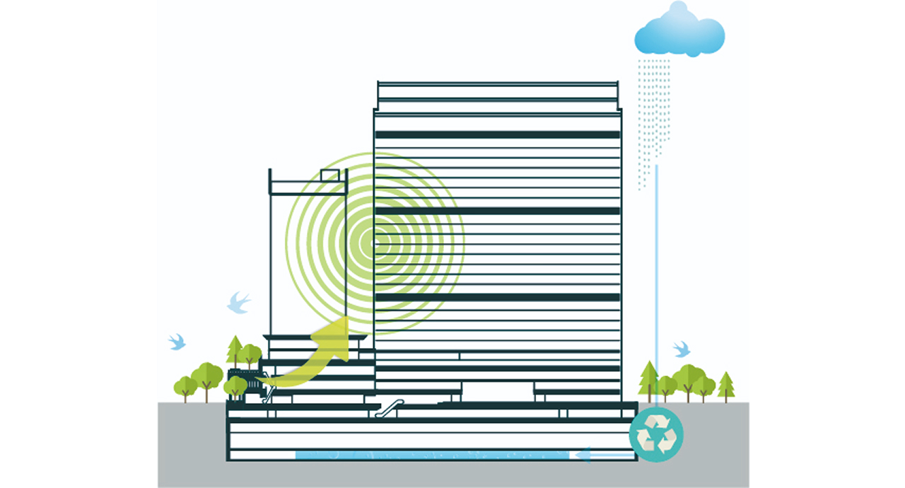 鉃鋼ビルディングは2015年10月の竣工以前より、「人・街・時をつなぐ」をビル開発のコンセプトに掲げ、以来、環境負荷低減・快適性向上・防災対応・地域との連携などに継続して取り組んできました。 今回の認証では、これらの継続的な取り組みが高く評価され、評価における5つのテーマのうち特に以下の分野で、DBJ Green Building 認証取得物件の中でもトップランクの高い得点を得ました。